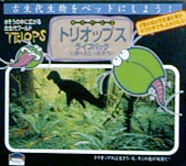 トリオップス飼育キットはテンヨーという会社から発売されていて、定価は1200円です。私は去年の夏休み明けに仙台市泉区のダイエーで在庫処分特価の500円で購入しました。シーズン当初価格は980円だったようです。小さい円筒形の水槽と木屑に混じった卵、えさ2種類がセットになっています。昔はやったシーモンキーにそっくりだといえば、理解していただけると思います。シーモンキーとの違いは、形、淡水で育つ、成長がはやいということでしょうか。形はカブトガニのミニチュア版で太古を感じさせます。成長は、本当に速いようです。誕生時は0.5mmほどなのが、5日で5mm、1ヶ月で3cmほどになるようです。1日1mmの成長ですからたいしたものです。寿命は約1ヶ月ですので、小中学生の夏休みの宿題には最適なのではないでしょうか。